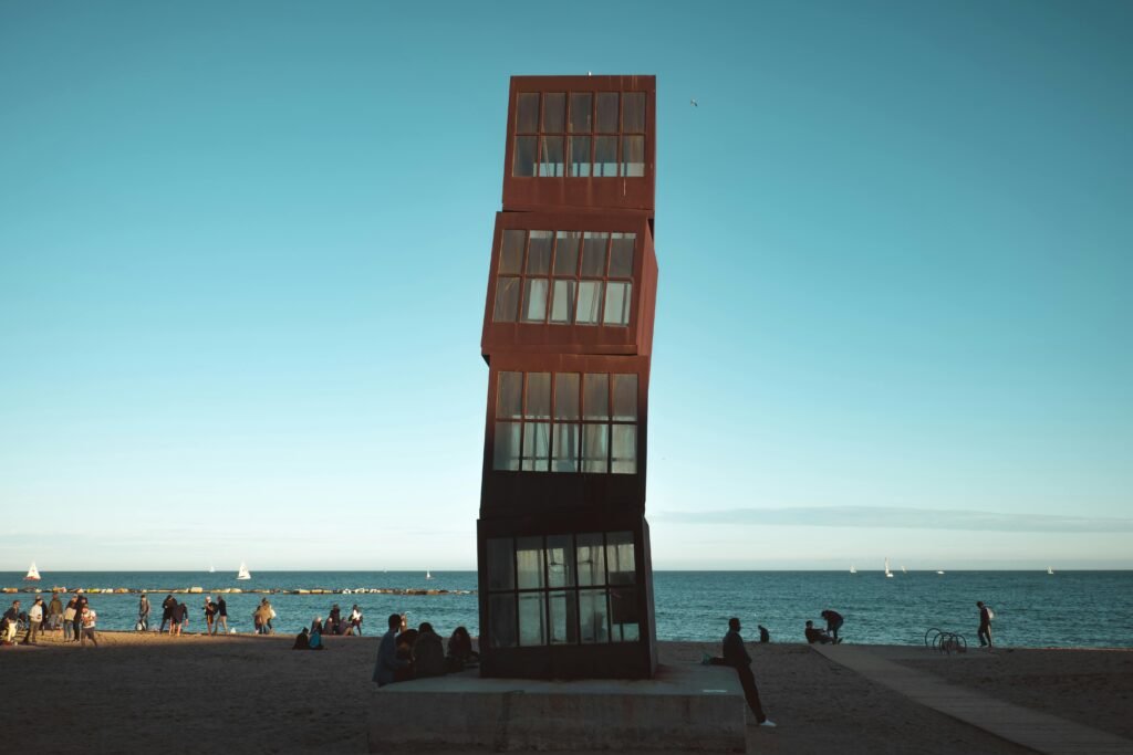 As evening approaches, head to Barceloneta Beach for a quiet sunset walk. Couples often sit along the stone promenade, watching waves roll across the shoreline while the sky fades into pink and orange.